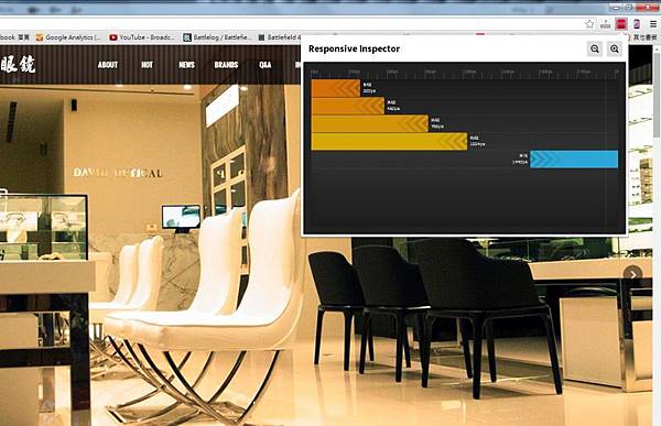 當您點開按鈕以後,若您發現有如以下(甚至更多)顏色的Bar出現,代表這個網站就有符合多裝置螢幕尺寸瀏覽的網頁設計機制,也就是我們俗稱的Reponsive Web Design (RWD技術)